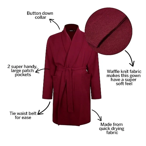 Bigdude Knitted Waffle Dressing Gown Burgundy